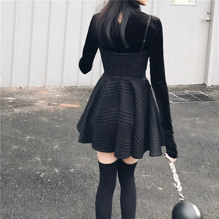 Schwarzes Goth Kleid mit Korsett