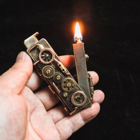 Dieses Feuerzeug ist nicht nur funktional, sondern auch ein echtes Sammlerstück für Steampunk-Liebhaber. Mit seinem detaillierten Design und hochwertigen Materialien ist es ideal, um Ihrer Sammlung eine Prise Retro-Futurismus hinzuzufügen.