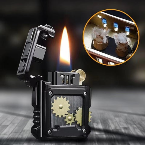 Das Steampunk Getriebe Feuerzeug ist ein einzigartiges Accessoire, das Eleganz und Funktionalität vereint. Dieses Feuerzeug besticht durch sein industrielles Design, das an die Mechanik des Steampunk-Zeitalters erinnert. Es verfügt über sichtbare Zahnräder, die einen rustikalen und mechanischen Look verleihen.