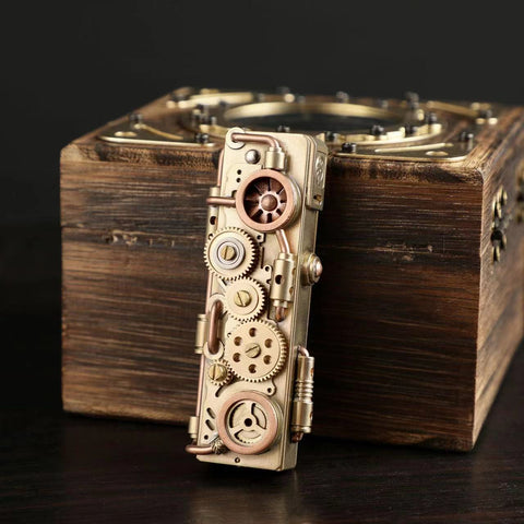 Die detailreiche Verarbeitung und das robuste Design machen es nicht nur funktional, sondern auch zu einem stilvollen Accessoire. Der antike Metall-Look verleiht dem Feuerzeug einen authentischen Retro-Charme. Perfekt für Sammler und Liebhaber des Steampunk-Genres, die ein einzigartiges und praktisches Stück suchen.