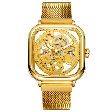 Die Steampunk Automatik Armbanduhr Stahl verbindet das faszinierende Spiel mechanischer Zahnräder mit einem modernen Edelstahlgehäuse. Ihr offenes Zifferblatt gibt den Blick frei auf das detailreiche Uhrwerk, das im Inneren präzise und zuverlässig arbeitet. Jede Bewegung des Handgelenks erweckt das filigrane System zum Leben und macht die Uhr zu einem echten Blickfang.
