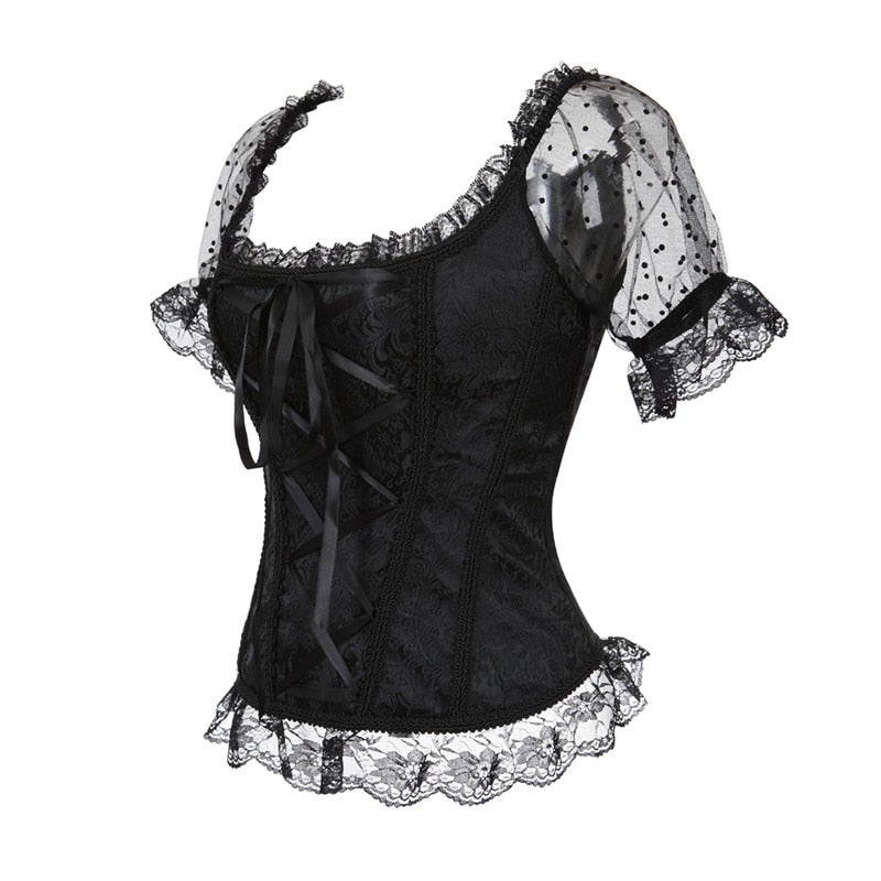 Die Retro Steampunk Spitzenbluse verkörpert die perfekte Symbiose aus verspielter Sinnlichkeit und edler Raffinesse. Mit ihrem figurbetonten Schnitt, den zarten Spitzendetails und den transparenten Puffärmeln verleiht sie jedem Outfit eine unwiderstehliche Ausstrahlung. Diese Bluse ist inspiriert von der Mode viktorianischer Damen, die Eleganz mit Selbstbewusstsein verbanden – ideal für Steampunk-Events, historische Kostüme oder extravagante Abendlooks.