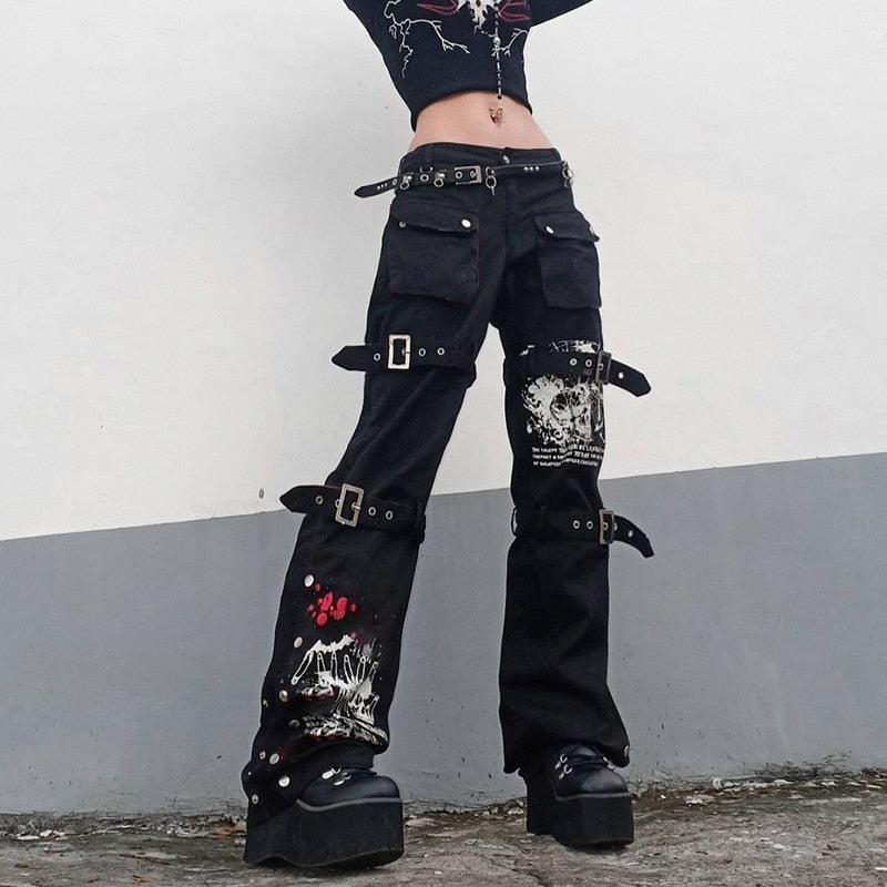 Ihr weiter Schnitt sorgt nicht nur für Komfort und Bewegungsfreiheit, sondern verleiht auch eine starke, selbstbewusste Silhouette. Die praktischen Taschen machen die Hose funktional, während die einzigartigen Muster sie zu einem unverwechselbaren Blickfang machen. Ideal für Festivals, Conventions oder für alle, die sich im Alltag mit einem außergewöhnlichen Style präsentieren möchten.