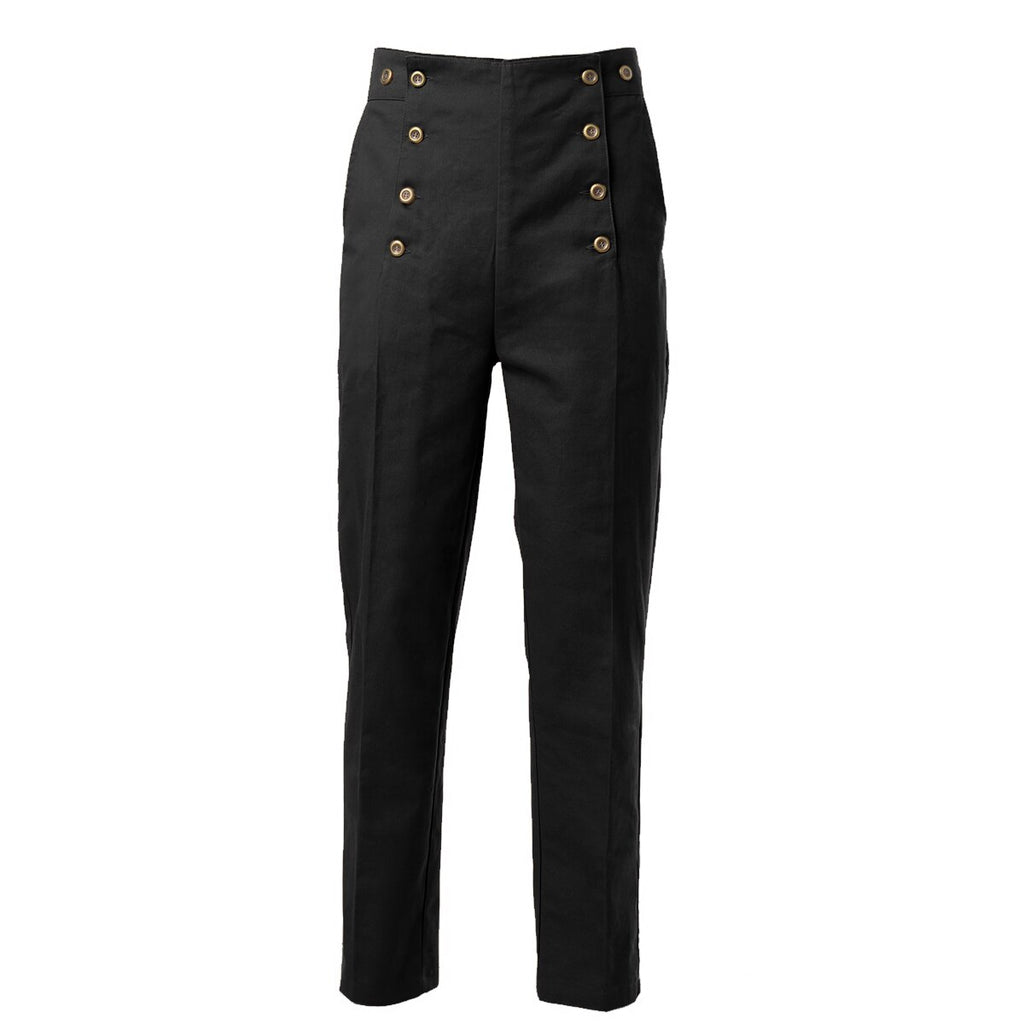 Die hohe Taille formt eine elegante Silhouette, während die seitlichen Taschen praktische Funktion bieten. Ob mit Weste, Militärjacke oder schnürbaren Stiefeln – diese Hose ist die Grundlage eines souveränen Ensembles für Cons, LARP, Bühnenauftritte oder stilvolle Alltagslooks im Neo-Viktorianischen Geist.