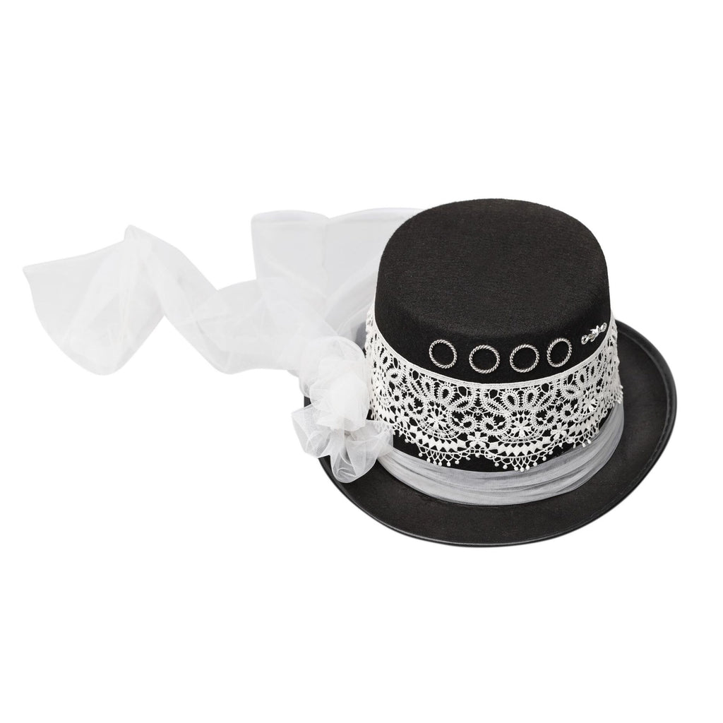 Der Steampunk Hut mit Spitze ist ein elegantes Accessoire, das jedem Outfit eine raffinierte viktorianische Note verleiht. Der Hut ist mit feiner weißer Spitze und dekorativen Details verziert, die seine edle Erscheinung unterstreichen.