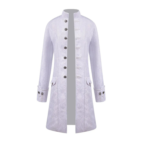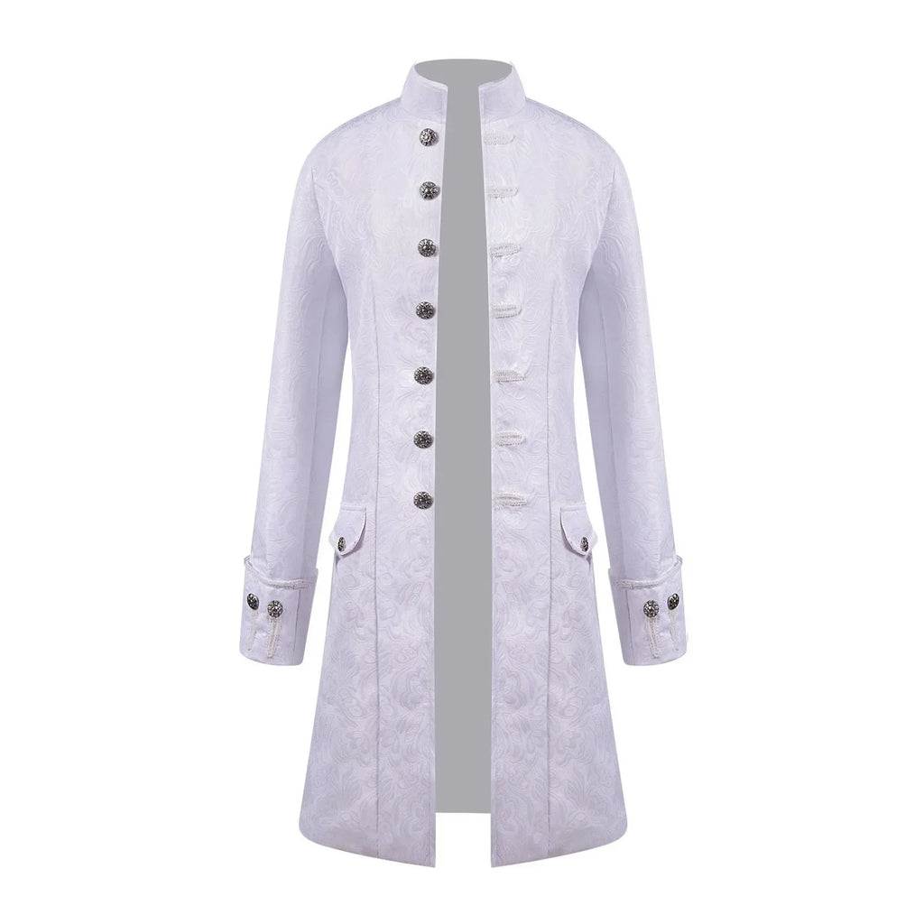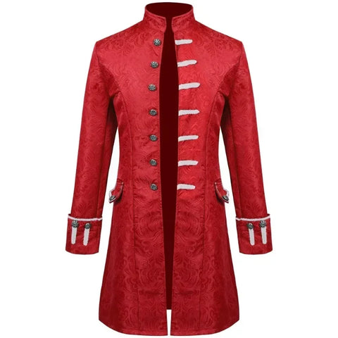Die aufwendig gearbeiteten Details – von den kunstvollen Knöpfen über die verzierten Manschetten bis hin zu den filigranen Brokatmustern – machen dieses Kleidungsstück zu einer Hommage an den Glanz der viktorianischen Ära. Der taillierte Schnitt unterstreicht die Figur und verleiht dem Träger eine würdevolle Silhouette, die sofort Respekt und Aufmerksamkeit auf sich zieht.