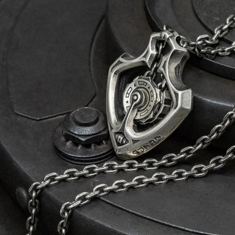 Der Anhänger aus robuster Zinklegierung ist kunstvoll gestaltet: Zahnräder, Nieten und filigrane Muster verschmelzen zu einem mechanischen Kunstwerk, das Stärke und Eleganz zugleich verkörpert. Trage die Steampunk Schild Kette als Statement – ob zu viktorianischen Kostümen, auf Festivals oder als besonderes Accessoire für den Alltag. Die mechanische Ästhetik und das geheimnisvolle Design ziehen Blicke magisch an und machen dich zum Mittelpunkt jeder Szene.