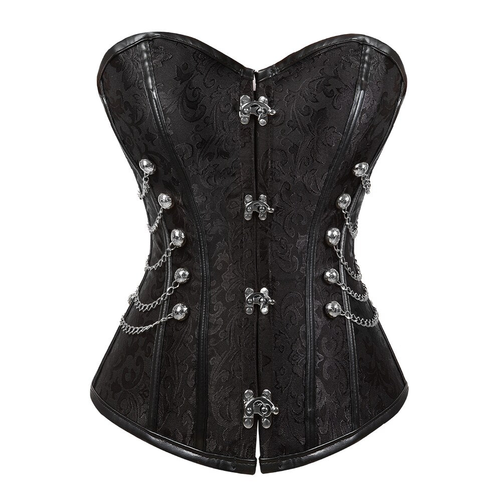 Das Gothic Königinnenkorsett ist ein Meisterwerk königlicher Anmut und unerschütterlicher Stärke. Es wurde entworfen für jene, die sich nicht mit dem Gewöhnlichen zufriedengeben – Frauen, die herrschen, nicht folgen. Die detailreiche Brokatstruktur verleiht dem Design Tiefe und Noblesse, während die silbernen Ketten und Metallelemente den Look einer dunklen Monarchin vollenden.