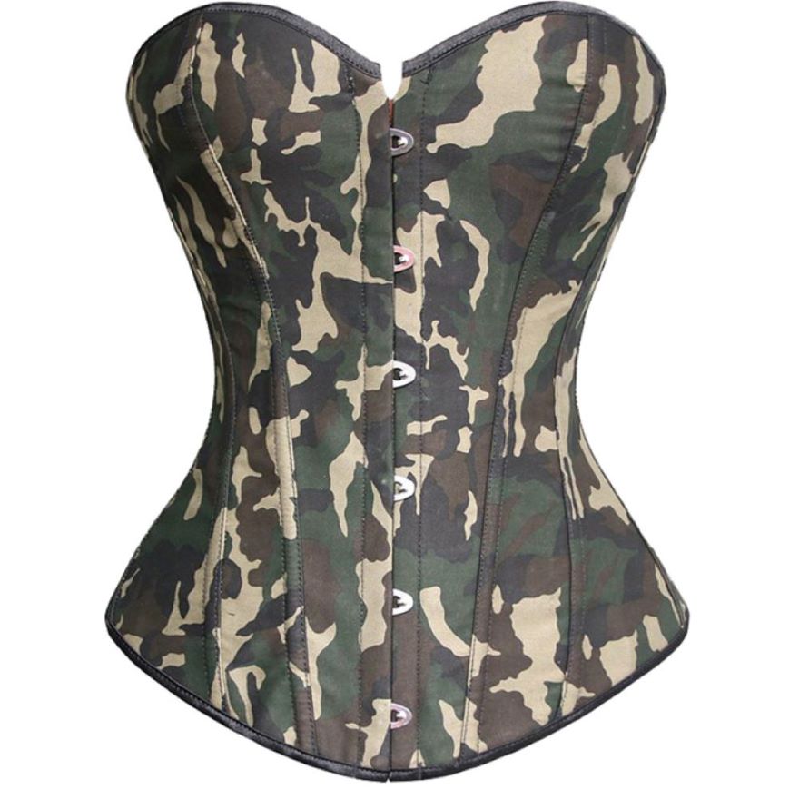 Das Steampunk Militärkorsett ist mehr als nur ein Kleidungsstück – es ist eine Rüstung aus Stoff, geschaffen für Frauen, die Stärke mit Stil verbinden. Das Camouflage-Muster verleiht ihm einen rebellischen Charakter, während die präzisen Nähte und die taillierte Form an militärische Disziplin erinnern. Mit seinem robusten Polyester-Spandex-Mix sitzt es wie angegossen und betont die Silhouette mit einer Mischung aus Macht und Eleganz.