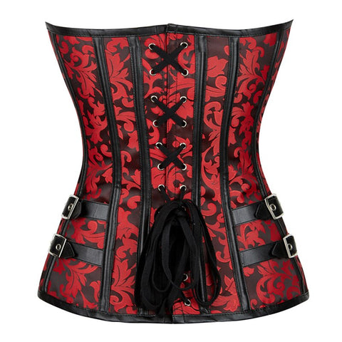 Das Viktorianisches Korsett Rot verkörpert die perfekte Balance zwischen Verführung und Stärke. Inspiriert von der Mode des 19. Jahrhunderts, kombiniert es ein florales Brokatmuster mit markanten schwarzen Kunstleder-Applikationen, die ihm einen modernen Steampunk-Charakter verleihen.