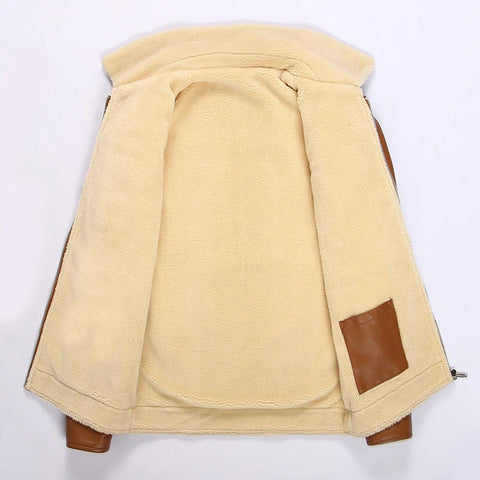Das weiche, helle Innenfutter aus Kunstfell sorgt für wohlige Wärme, während das braune Lederdesign rustikale Stärke ausstrahlt. Brusttaschen mit Knopfdetails sowie der markante Kragen unterstreichen den authentischen Piloten-Look, der perfekt in die Welt des Steampunk passt – wo Himmelsschiffe und fliegende Maschinen den Ton angeben.