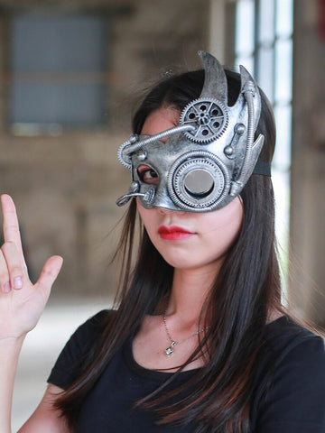 Diese Steampunk Halbgesichtsmaske verwandelt Ihr Gesicht in ein halbes Metallgesicht! Mit zahlreichen Details wie Zahnrädern, Rohren und Muttern ist diese Maske ein Muss für jedes Steampunk-Kostüm.