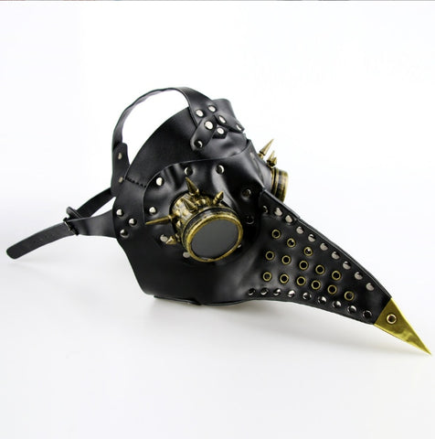 Die Steampunk Rabenmaske ist das perfekte Accessoire für alle, die mit einem kühnen und geheimnisvollen Steampunk-Look auffallen möchten. Inspiriert von den Masken der Pestärzte, besticht dieses einzigartige Stück durch Metallspitzen und industrielle Details. Hergestellt aus hochwertigen Materialien, bietet sie dank des verstellbaren Riemens einen bequemen Sitz. Ideal für Conventions, Kostümpartys oder als Highlight eines Steampunk-Outfits.