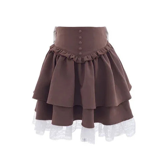 Der Brauner Steampunk Lolita Rock verbindet die Romantik der viktorianischen Mode mit dem verspielten Charme des Lolita-Stils. Seine mehrfach geschichtete Struktur aus weichen Stofflagen fällt sanft und erzeugt bei jeder Bewegung einen anmutigen Schwung. Die feine Spitzenborte am Saum verleiht dem Design eine zarte Note, während der hohe Bund mit Zierknöpfen an die handwerkliche Präzision vergangener Zeiten erinnert.
