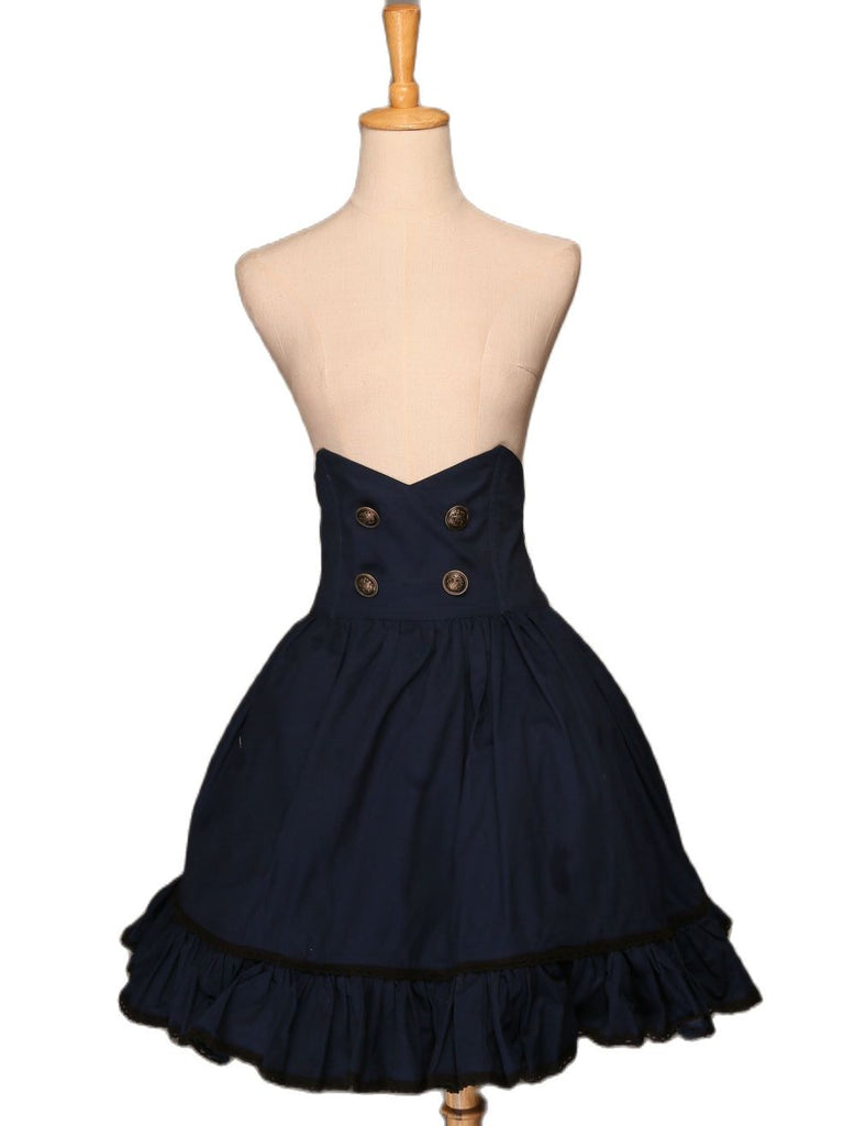 Der Viktorianischer Uniformrock erinnert an die zeitlose Anmut viktorianischer Hofdamen – doch mit einem Hauch militärischer Strenge. Sein tiefblauer Stoff fällt in sanften Falten, während die hohe, taillenbetonte Passform mit den vier metallischen Knöpfen an die Uniformen vergangener Offiziere erinnert. Eine perfekte Balance zwischen Ordnung und Romantik, zwischen Disziplin und Weiblichkeit.