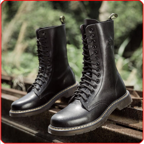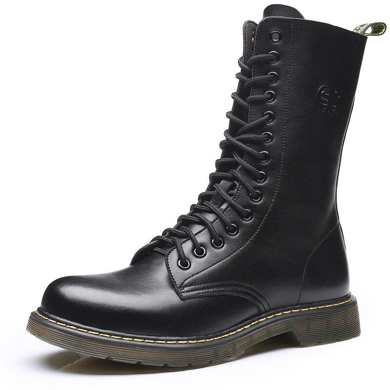 In einer Welt, die Härte verlangt, sind die Dieselpunk Kampfstiefel mehr als nur Schuhe – sie sind ein Symbol für Standhaftigkeit und Kraft. Das glatte schwarze Leder mit markanter Nahtführung trifft auf eine massive, griffige Sohle, die bei jedem Schritt Kontrolle und Stabilität garantiert.