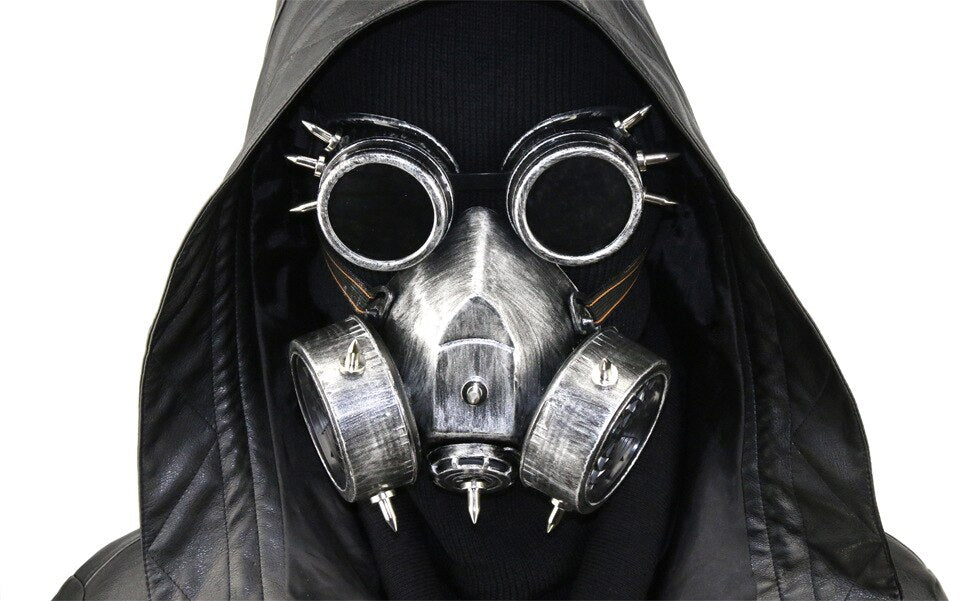 Tauchen Sie ein in eine postapokalyptische Welt mit dieser Apokalyptische Steampunk Gasmaske. Diese Maske ist die perfekte Verschmelzung von industrieller Steampunk-Ästhetik und dystopischer Atmosphäre. Verziert mit Metallspitzen und markanten Filtern, erinnert sie an das Überleben in einer zerstörten Welt. Die integrierten Brillen und das gealterte Metalldesign verleihen eine authentische Note und erinnern an Entdecker vergangener Zeiten und Überlebende imaginärer Zukünfte.