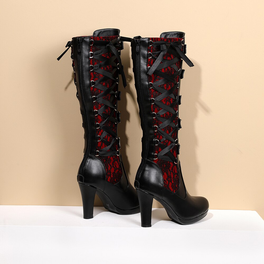 Die Gothic Steampunk Stiefel sind mehr als nur Schuhe – sie sind ein Statement. Mit ihren zahlreichen Metallschnallen, der raffinierten seitlichen Schnürung und den roten Spitzen-Details im Inneren vereinen sie die Ästhetik der Gothic-Szene mit der Mechanik des Steampunk-Universums. Diese Stiefel erzählen Geschichten von geheimnisvollen Nächten, viktorianischen Straßen und abenteuerlustigen Rebellinnen.