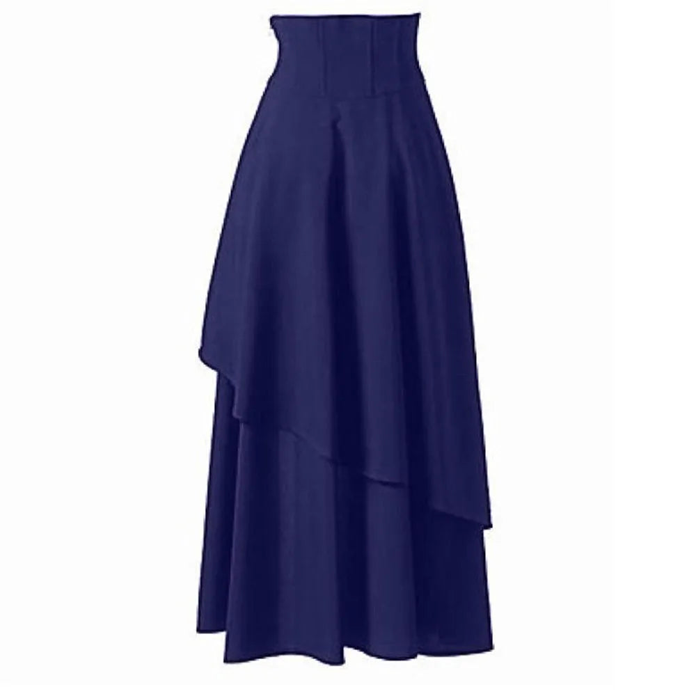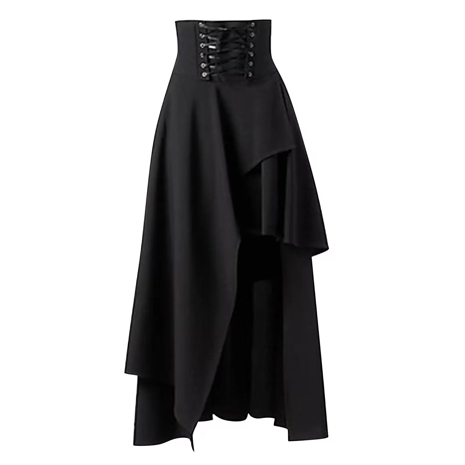 Der Mittelalterlicher Asymmetrischer Steampunk Rock verbindet den Charme vergangener Jahrhunderte mit der rebellischen Eleganz des Steampunk-Stils. Sein hoher Bund mit Schnürung formt eine betonte Taille, während der ungleichmäßige, fließende Saum eine Bewegung erzeugt, die an die Silhouetten mittelalterlicher Edeldamen erinnert.