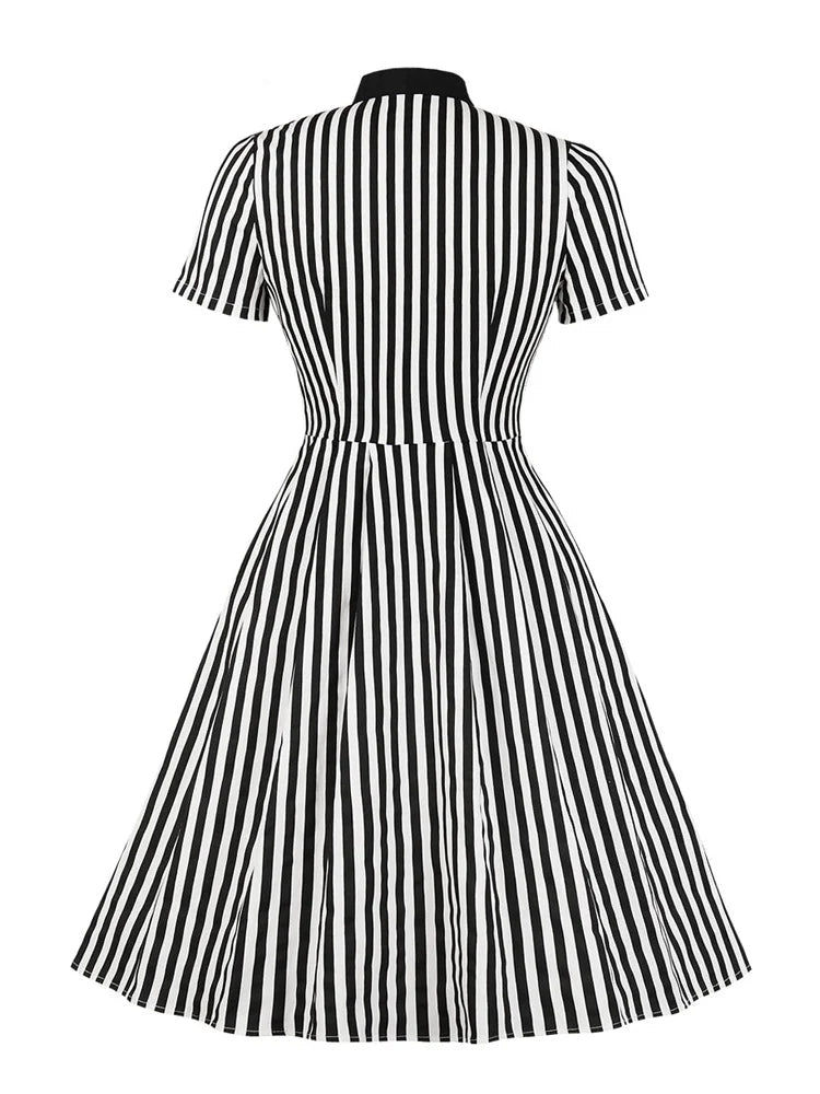 Das Schleifen Gestreiftes Steampunk Kleid vereint viktorianische Eleganz mit einem Hauch moderner Extravaganz. Seine klaren Linien und das kontrastreiche Streifenmuster verleihen ihm eine markante, fast hypnotische Wirkung – perfekt für Frauen, die mit Stil auffallen wollen, ohne ihre Raffinesse zu verlieren.
