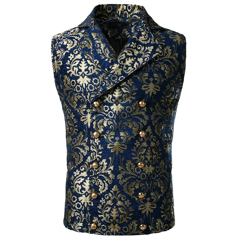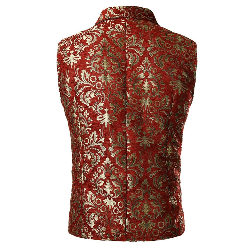 Das reich verzierte Brokatmuster in Kombination mit den glänzenden Knöpfen vermittelt ein Gefühl von Macht und Noblesse. Diese Weste ist nicht einfach ein Kleidungsstück – sie ist ein Symbol für Stand und Stil, für jene, die das Besondere suchen und den Mut haben, es zu tragen.