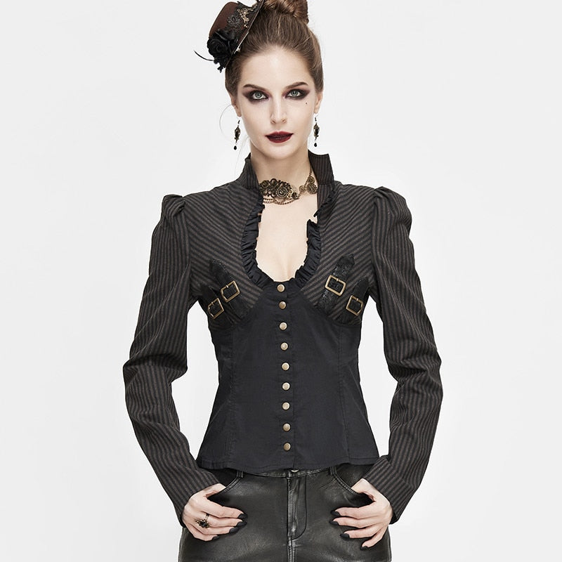 Steampunk Gothic Bluse – Dunkle Eleganz im Retro-Stil