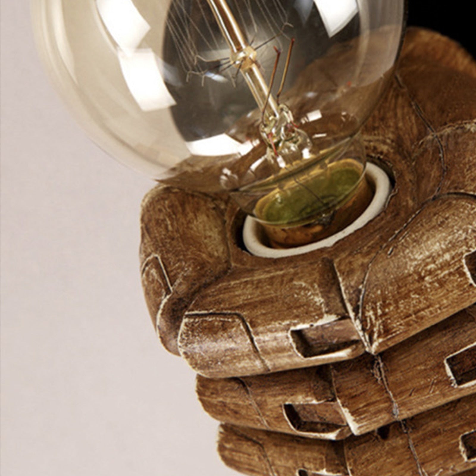 Die Steampunk Handhalter Lampe fängt die Fantasie mit ihrem unkonventionellen Design ein, das eine handgeschnitzte Holzhand darstellt, die eine Glühbirne hält. Diese Wandlampe kombiniert rustikalen Charme mit einer Prise des Mysteriösen und schafft eine gemütliche und zugleich faszinierende Atmosphäre.