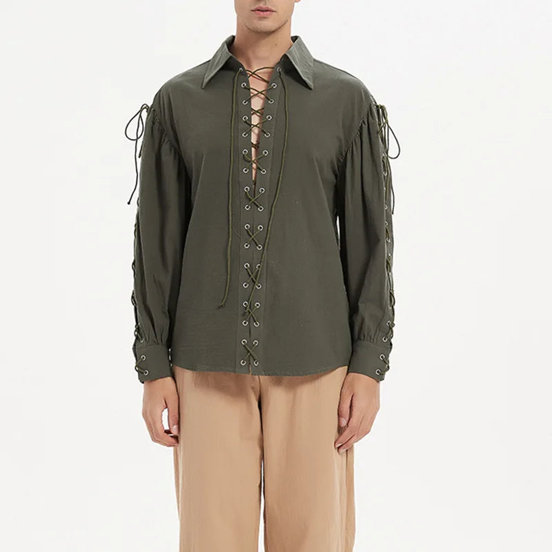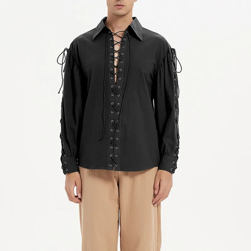 Sein Design strahlt Stärke und Individualität aus: Jede Schnürung wirkt wie ein Symbol der Freiheit, jede Naht erzählt von der Symbiose zwischen Eleganz und Kraft. Ob auf einem viktorianisch inspirierten Ball, einem LARP oder im Alltag als mutiges Fashion-Statement – dieses Hemd verleiht dir eine unvergleichliche Präsenz.