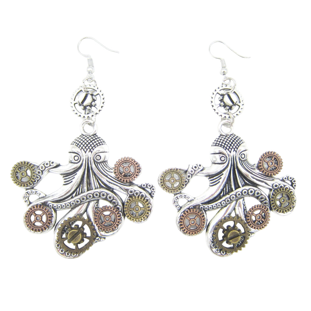 Tiefsee-Mechanik – Steampunk Silber Kraken Ohrringe