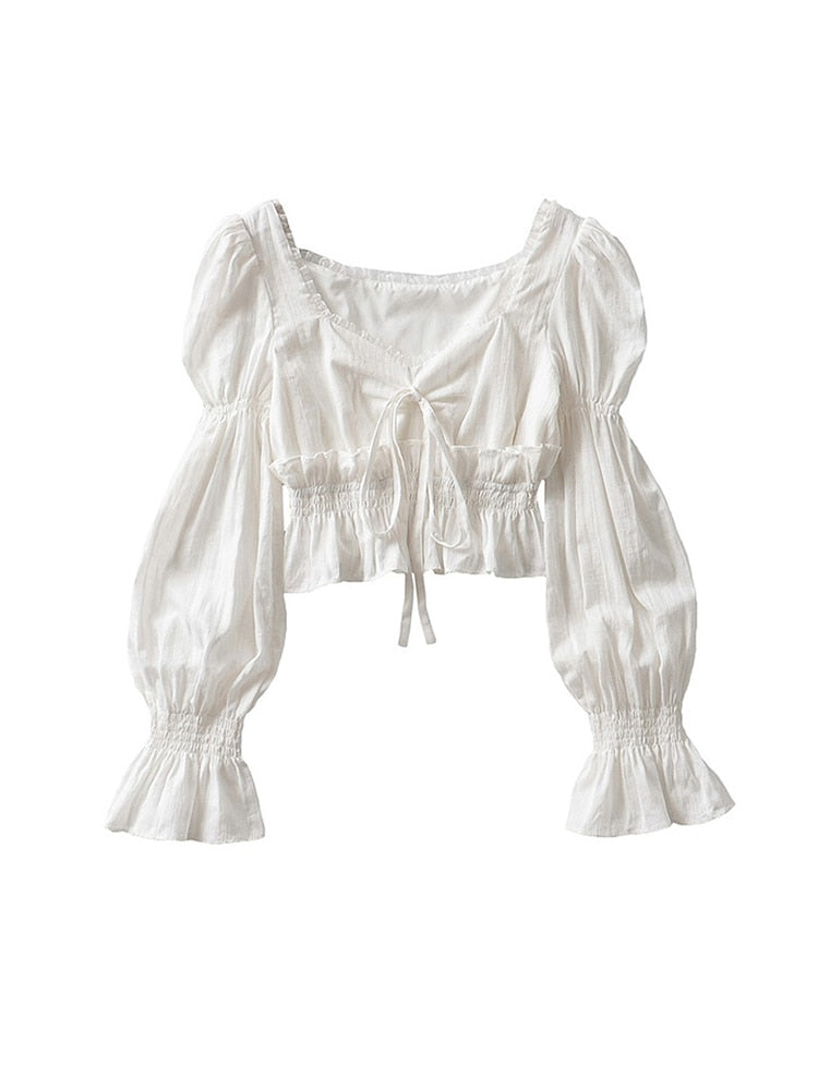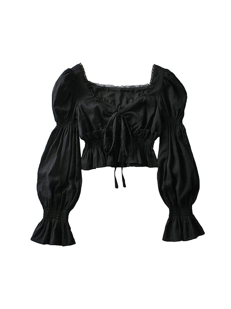 Das zarte Bindeband auf der Vorderseite setzt einen romantischen Akzent, während die voluminösen Ärmel in kunstvoll gerafften Stufen an die Handwerkskunst vergangener Jahrhunderte erinnern. Ihre Leichtigkeit macht sie zu einem Symbol für Freiheit, Kreativität und den unverwechselbaren Geist des Retro-Futurismus. Diese Sommerbluse ist nicht nur Kleidung – sie ist Ausdruck eines Lebensgefühls zwischen Nostalgie und moderner Individualität.