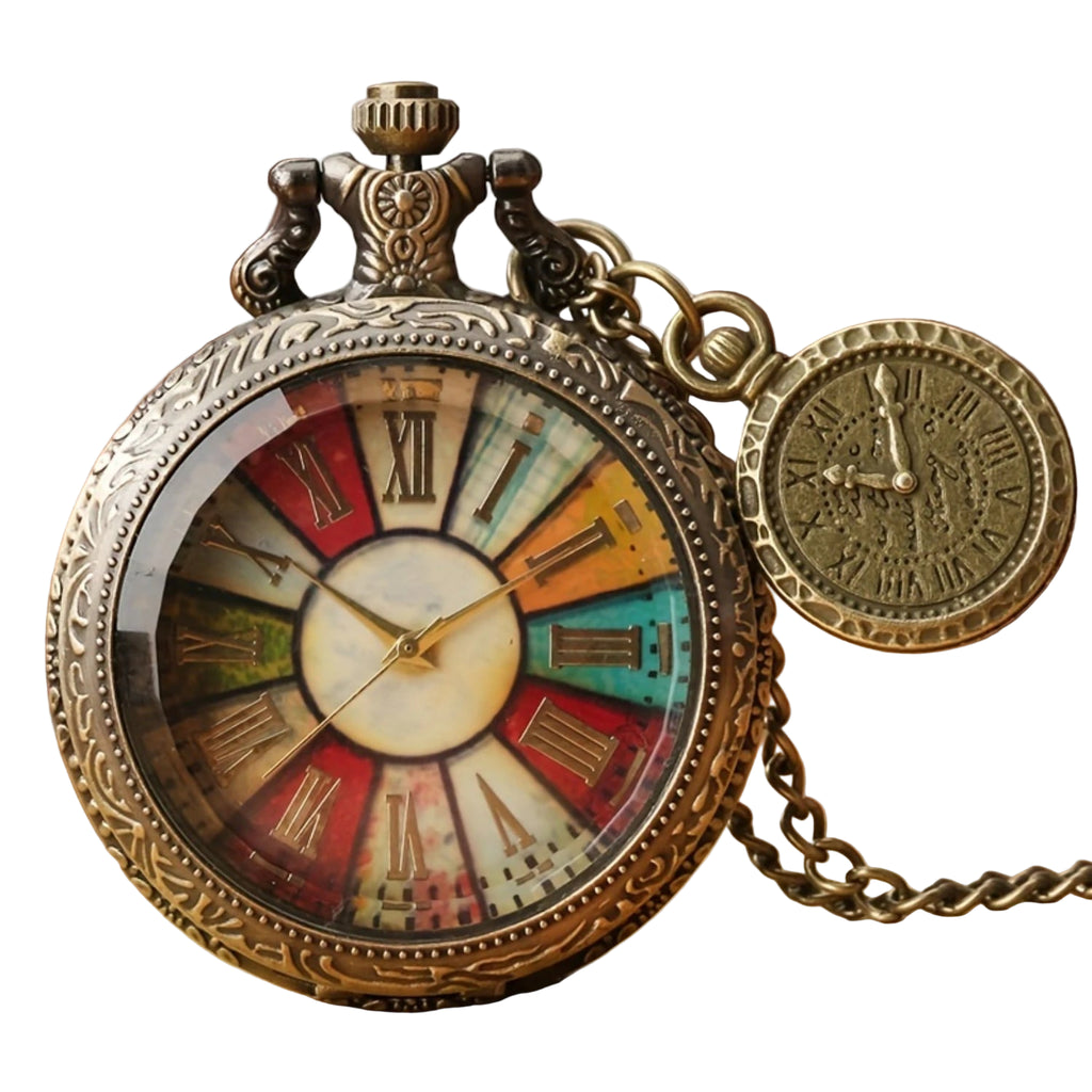 Der kunstvoll verzierte Gehäuserand in antikem Bronze-Look unterstreicht den historischen Charakter der Uhr und macht sie zu einem einzigartigen Accessoire für Sammler, Steampunk-Enthusiasten oder Liebhaber außergewöhnlicher Accessoires. Ob getragen zu einem Kostüm, als stilvolles Statement-Piece oder als Sammlerstück – diese Farbenuhr bringt den Zauber vergangener Zeiten zurück.