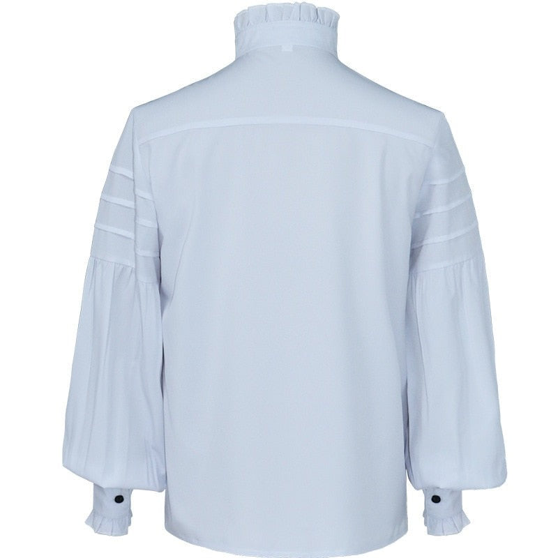 Dieses Hemd erzählt Geschichten: von Bällen, auf denen mechanische Augen hinter Masken funkeln, von nächtlichen Experimenten im Labor und von Treffen in den dunklen Bibliotheken alter Herrenhäuser. Der hochstehende Kragen mit seiner feinen Faltenarbeit verleiht Ihnen eine Aura von Autorität, während das Jabot subtilen Luxus ausstrahlt – perfekt, um jedes Steampunk-Outfit auf das nächste Level zu heben.
