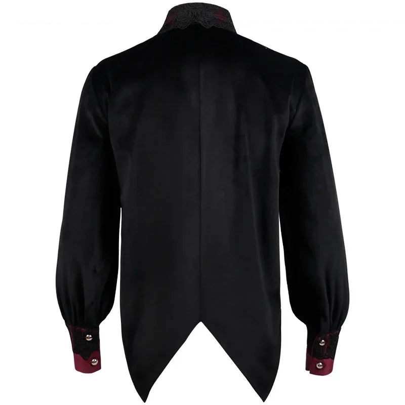 Das Steampunk Viktorianisches Langarmhemd verbindet eine aristokratische Anmut mit markanter Bühnenpräsenz. Die mehrlagige Rüschenpartie am Brustbereich und der hohe Kragen mit feiner Spitze verleihen dem Design eine edle Tiefe – perfekt für Auftritte mit Charakter.