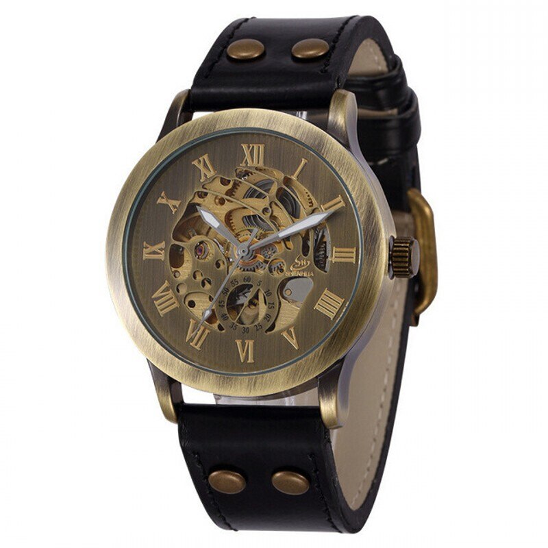 Die Steampunk Vintage Armbanduhr ist mehr als nur ein Zeitmesser – sie ist ein Stück lebendige Geschichte. Mit ihrem offenen Zifferblatt, das den Blick auf das präzise arbeitende Uhrwerk freigibt, erinnert sie an die Eleganz und Raffinesse viktorianischer Ingenieurskunst. Jede Bewegung der Zahnräder erzählt von einer Epoche, in der Mechanik und Handwerkskunst das Fundament der Moderne bildeten.