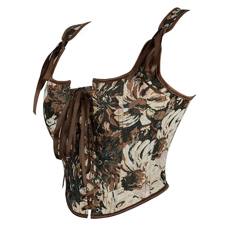 - Design: Florales Vintage-Muster mit Frontschnürung
