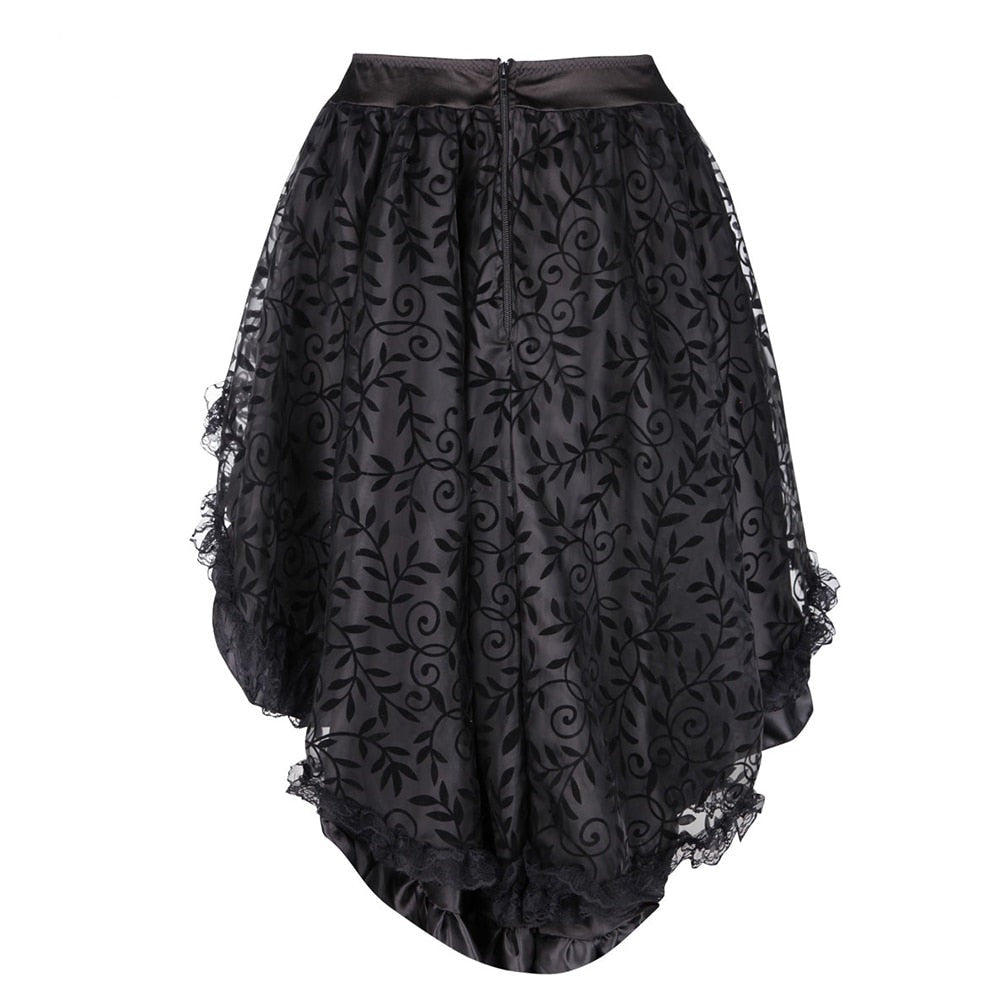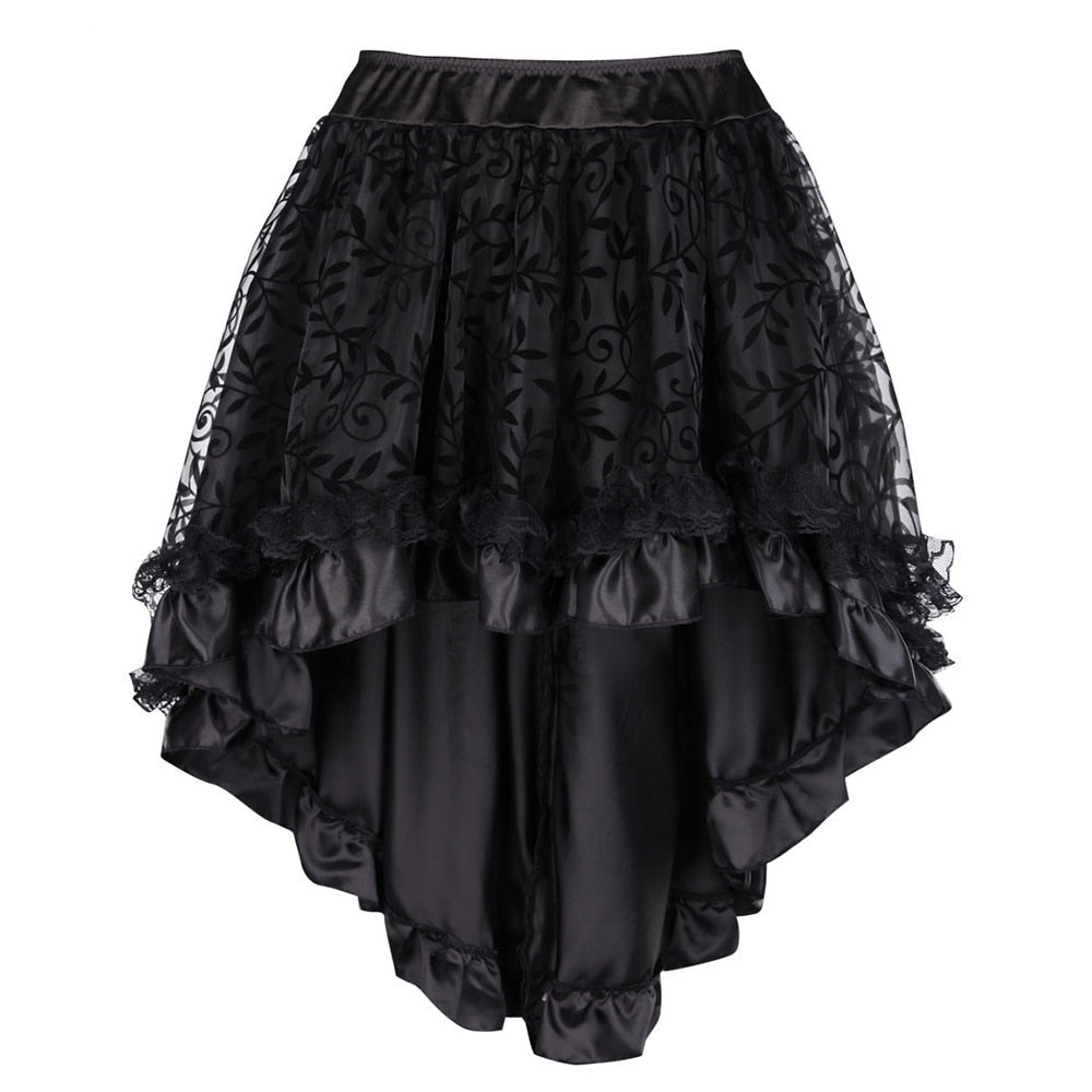 Der Viktorianischer Rüschenrock ist ein echter Blickfang für alle, die den Charme vergangener Zeiten in moderner Form erleben möchten. Mit seinem geschichteten Design aus glänzendem Satin und zarter, bestickter Spitze verleiht er jeder Bewegung eine edle Note – geheimnisvoll, feminin und voller Charakter.